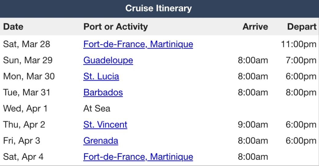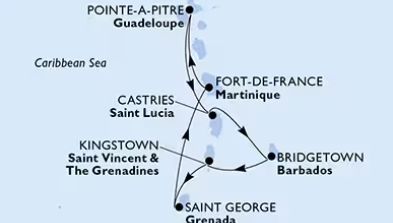 Martinique, Guadeloupe, St. Lucia, Barbados, Sea Day, St. Vincent, Grenada, Martinique