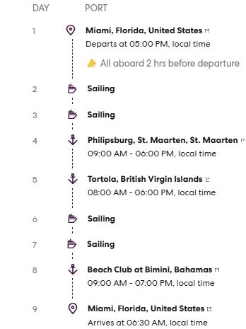 Embark on an unforgettable 8-night voyage from Miami aboard Brilliant Lady’s MerMaiden sailing. Explore the stunning Caribbean with stops in St. Maarten, where vibrant culture meets crystal-clear waters, and Tortola, home to lush landscapes and legendary rum distilleries. After soaking up the sun at sea, indulge in the exclusive Beach Club at Bimini before returning to Miami—because this isn’t just a cruise, it’s an experience.